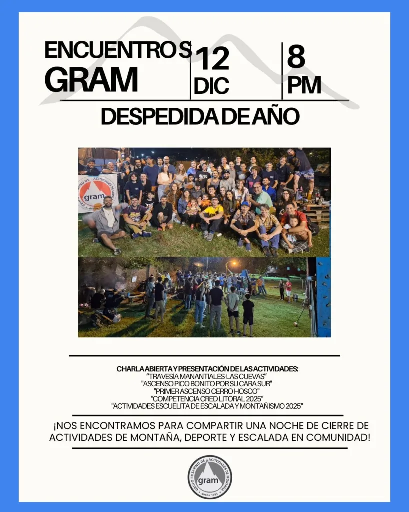 La mejor manera de conocer a Montañistas y Escaladores de la región es en nuestra reunión mensual de socios y amigos del GRAM. Vení a conocer lo mejor que tenemos, nuestra gente.